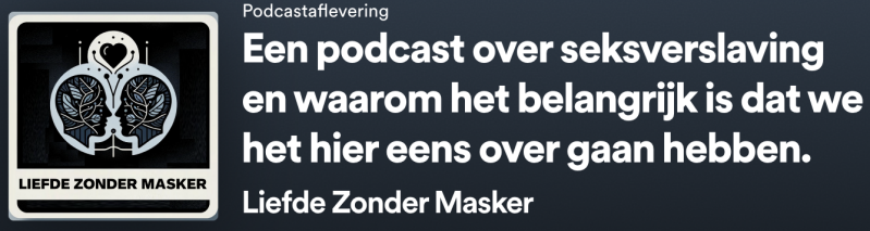 Onze podcast is er: Liefde Zonder Masker. Een podcast over misschien wel de minst besproken en meest onbegrepen vorm van verslaving: seksverslaving. Het idee ontstond op een woensdagavond toen ik vanuit Hilversum terugreed naar Amsterdam. De gesprekken en emoties uit de groepen die ik had begeleid bleven zoals altijd nog wat ronddwalen in mijn gedachten. Een daarvan was de opmerking "Het gaat hier over veel, maar eigenlijk heel weinig over seks."